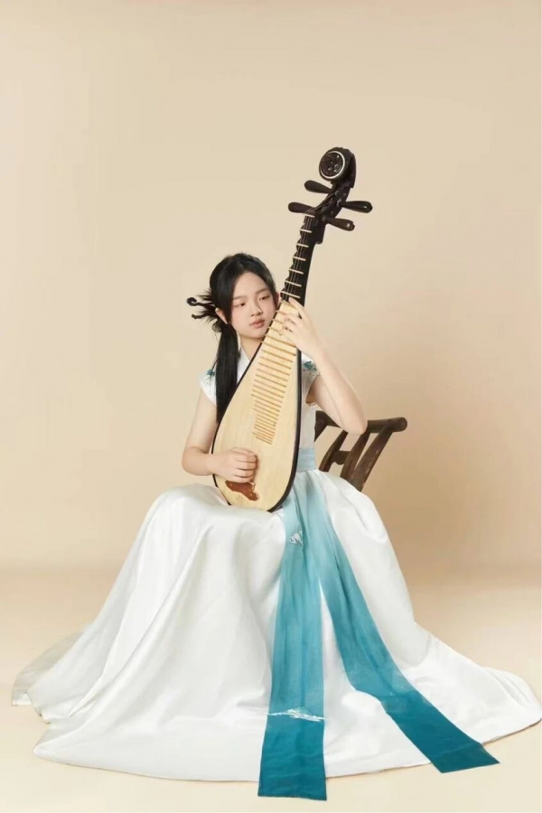 5岁开始跟随王鹤飞老师,周丽娟教授学习琵琶,2021年考入上音附中师从王臻副教授。先后荣获“2023年第四届华音杯全国艺术展演专业组”特金奖,“2024年湖州南太湖音乐节弹拨独奏比赛竖弹少年组”银奖第一,“2025年云冈杯国际民族器乐展演专业少年A 组”金奖,“2025年白玉兰国际音乐节专业独奏组”一等奖,“2025年康桥杯琵琶邀请赛独奏专业C组”金奖第一。