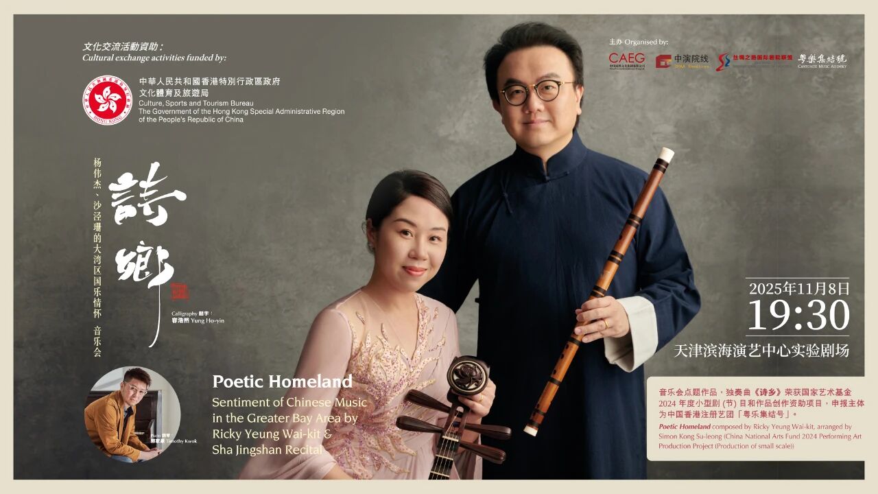 2025年11月8日晚,杨伟杰与沙泾珊伉俪领衔的《诗乡——大湾区国乐情怀》音乐会于天津滨海演艺中心圆满落幕,现场座无虚席。这场音乐会不仅奏响了南北交融的华美乐章,更谱写了一曲温暖人心的公益赞歌。