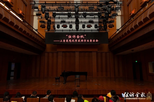 深秋时节,音乐与时光交织成诗。2025年11月21日晚,“弦诉金秋”——上音琵琶优秀获奖学生音乐会在上海音乐学院贺绿汀音乐厅温情上演。本场音乐会由上海音乐学院艺术处、民族音乐系联合主办,舒银老师倾情策划,汇聚了舒银和张铁、王臻、汤晓风、吴爽、韩妍、黄思霖七位老师指导的学生阵容。
