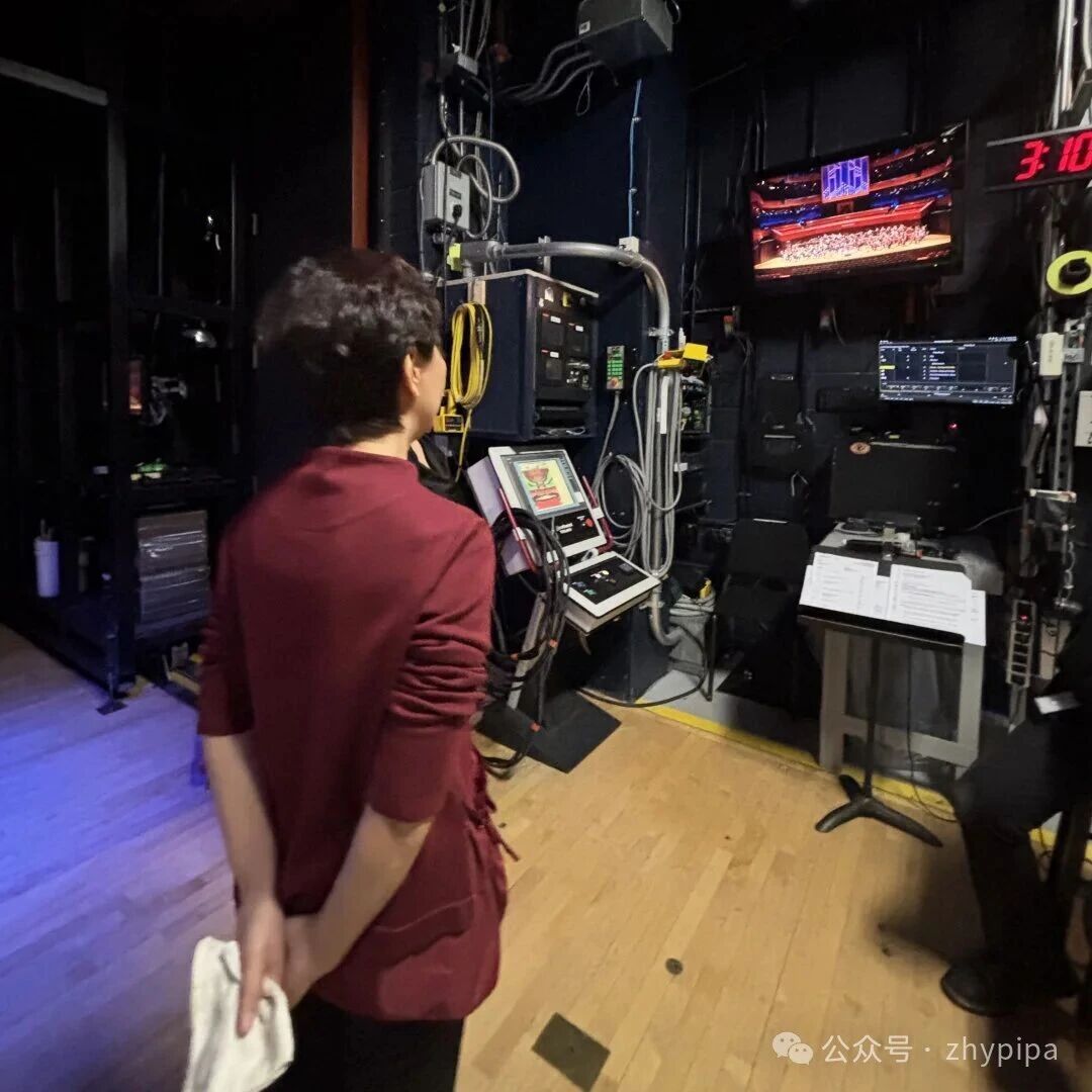 随后,章老师前往舞台调试灯光与音效,为正式排练做好万全准备。调试过程中,工作人员多次驻足聆听,脸上满是惊叹之色。即便他们此前曾与琵琶演奏家合作,对这一乐器并不陌生,却依旧被这指尖流淌出的独特音色深深吸引。