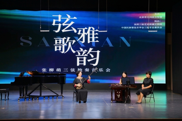 2025 年 9 ⽉ 21 ⽇中央⾳乐学院张柳萌副教授在北京市⼤兴区少年宫举办三弦讲演⾳乐会。