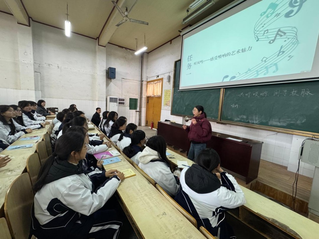 传承不止于舞台,更扎根于校园。砀山县全面推进“非遗进校园”,在36所中小学开设唢呐兴趣课程。砀山中学联合县教研室、李培名师工作室,开展“音乐+语文”跨学科教学——学生亲手拆装唢呐、体验循环换气,更在《白鹿原》《红高粱》等文本中解读其文化象征。这种“摸一摸、吹一吹、听一听、议一议、写一写”的沉浸式学习,让非遗从“遗产”变为“活态”,在青少年心中播下文化自信的种子。