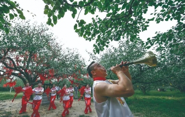 日常宣传亦多维发力。每逢“文化和自然遗产日”、梨花节、采梨节等重要节点,通过电视台、微信公众号及“安徽省文化云”平台集中推广。2025年,系列活动密集展开:3月31日至4月6日梨花节期间,唢呐展演走进梨树王景区;4月12日非遗传承人参与宿州市民盟非遗调研;5月22日配合省非遗展馆实地考察;6月13日参加全省遗产日主会场活动;9月13日亮相第30届砀山梨花节非遗民俗文化创意市集;11月先后走进县铁路中专、砀师附小开展“非遗进校园”专场展演——唢呐,正以更多元的方式回响在城乡之间。