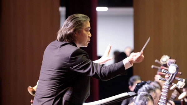 当晚,安徽乐团民族管弦乐团精彩协奏,安徽乐团民族管弦乐团艺术总监、著名指挥家李复斌执棒,上海音乐学院教授、博导刘红担任导聆。演出在《万年欢》喜庆热烈的旋律中拉开帷幕,由上海音乐学院五位学子联袂领奏,瞬间点燃全场气氛。