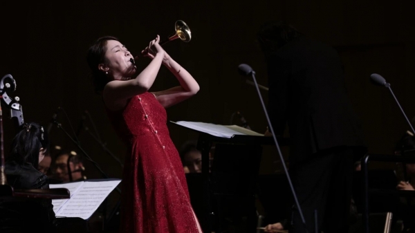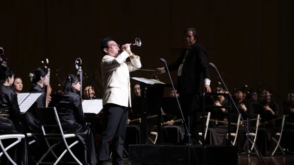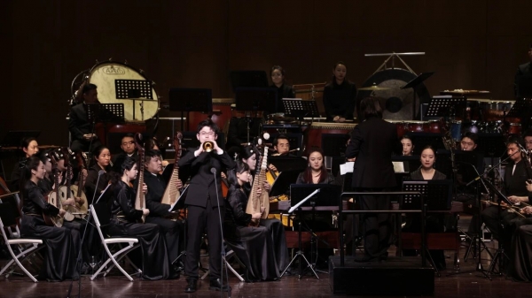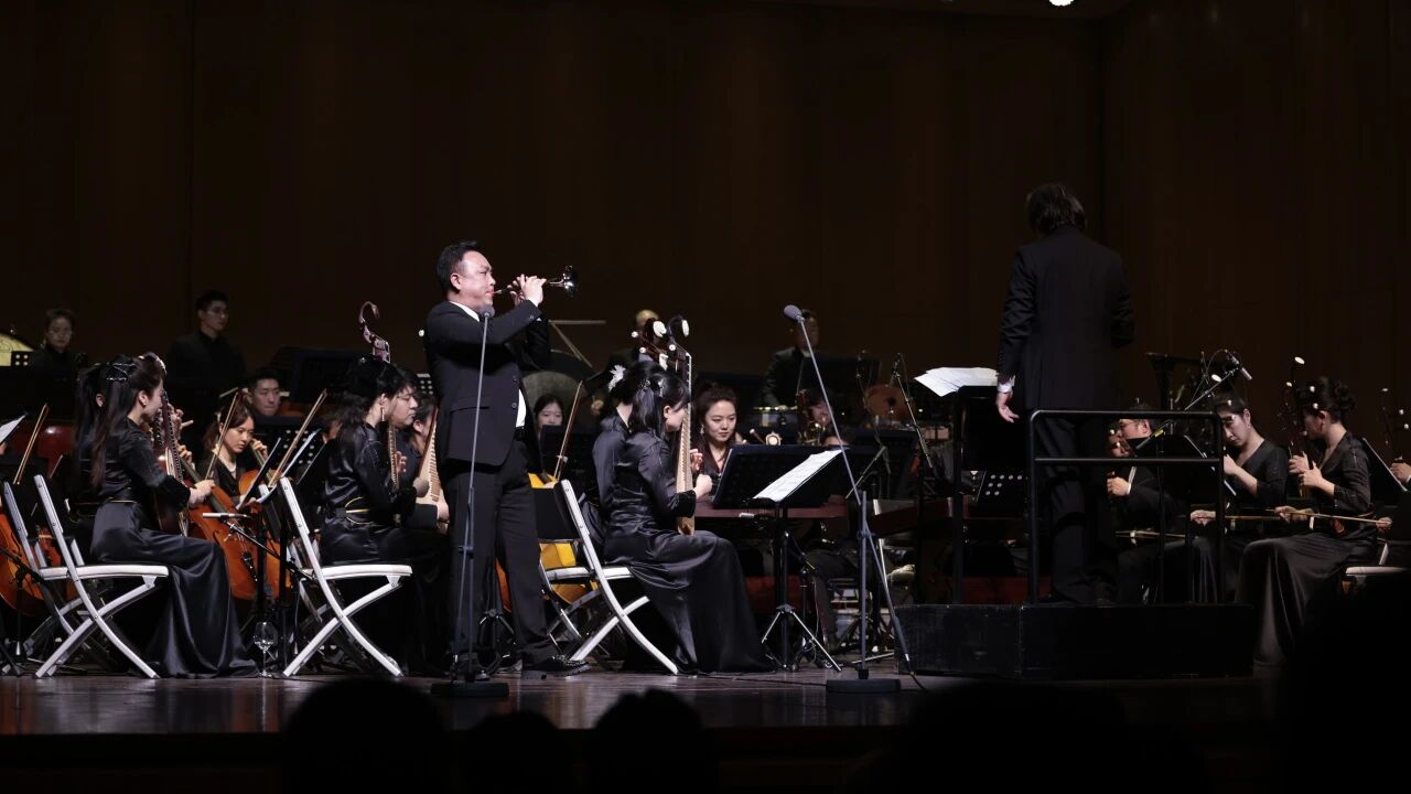最终,音乐会在经典名曲《百鸟朝凤》的全新演绎中达到最高潮。著名唢呐演奏家、上海音乐学院博士生导师刘英教授立于舞台中央领奏,而本场多位参演的青年演奏家们则巧妙分布于观众席之间。一时间,台上凤凰清越领鸣,台下“百鸟”遥相呼应,精湛的仿声技巧营造出百鸟和鸣、生机盎然的自然胜景。嘹亮的乐声更象征着民乐艺术代代相传、生生不息的蓬勃气象,这一充满巧思的编排,赢得了全场经久不息的热烈掌声。