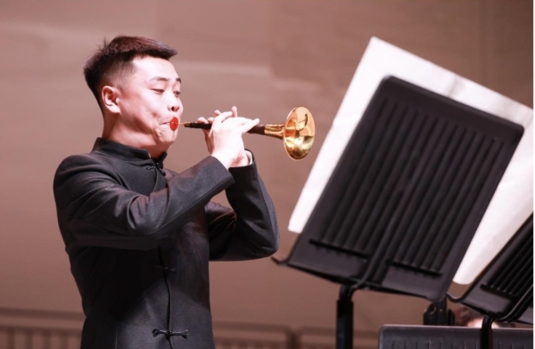 在“焦桐丹心”唢呐教学汇报音乐会上,中国音乐学院侯苏原与钢琴打击乐共同完成《恣逸》的演奏。核心曲目《姿逸》的演绎尤为深刻,这首作品兼具传统唢呐的醇厚音色与现代音乐的灵动韵律,侯苏原在演奏中精准把控快慢节奏的转换,将唢呐的延展性与表现力发挥到极致,通过细腻的气息控制和技巧处理,诠释出乐曲“自在舒展、意蕴悠长”的核心意境。以“焦桐丹心”的精神为底色,《姿逸》的灵动与音乐会整体的厚重相得益彰,与团队的默契配合让音乐表达更具层次。