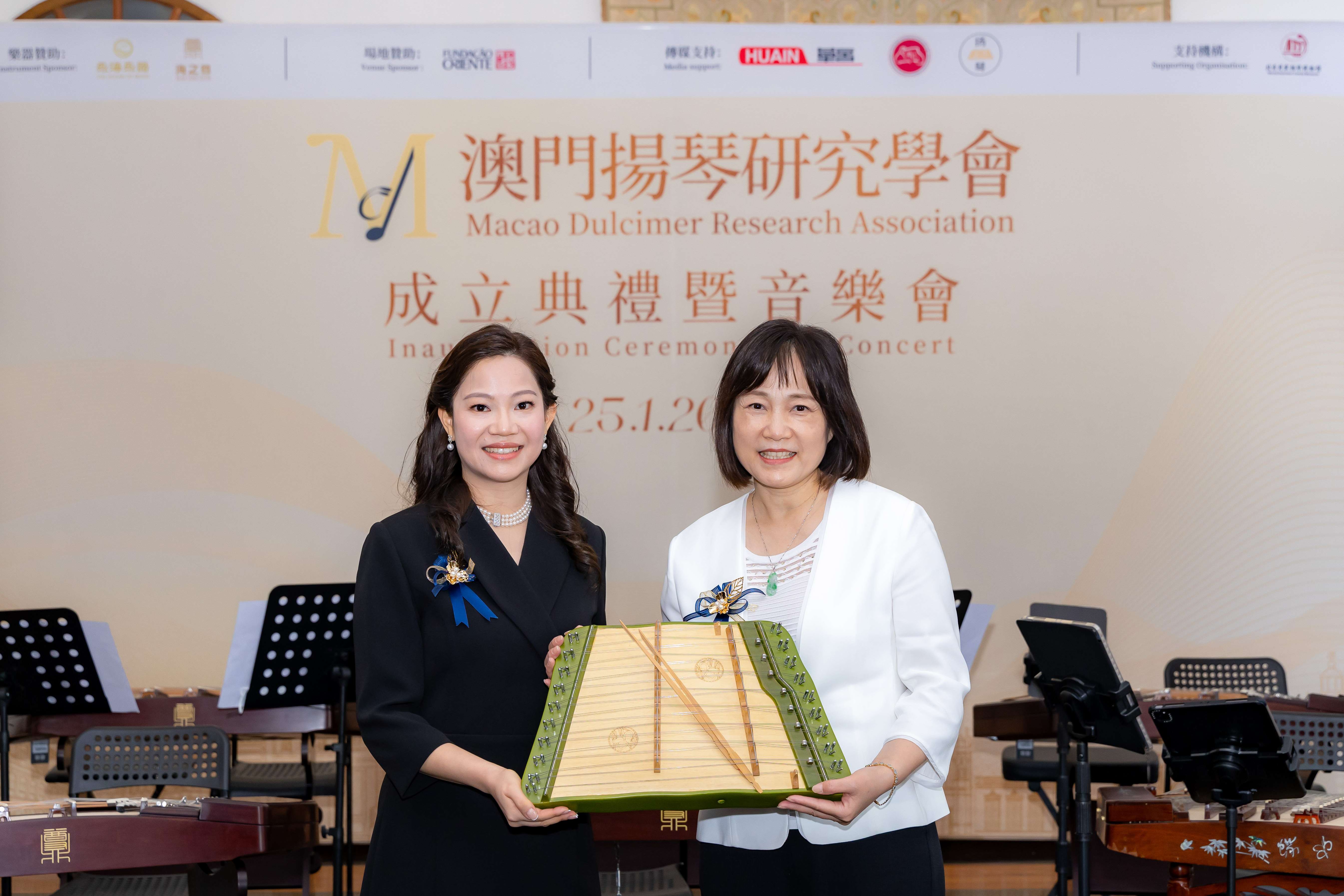李玲玲教授特别向学会捐赠一台蝶梦Mini小扬琴,作为学会成立的贺礼,象征扬琴艺术如蝶破茧、振翅高飞,也承载着内地音乐界对澳门扬琴事业发展的深切祝福与坚定支持。