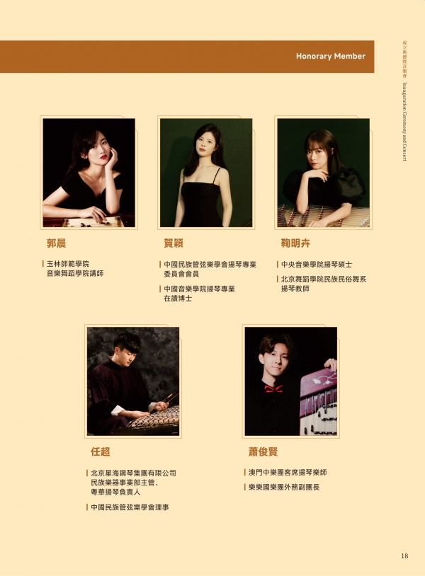 仪式在澳门科技大学人文艺术学院Dr. Matthew A. Haywood、澳门大学Dr. Javier Cuervo、中央民族大学薛澍老师、澳门中乐团扬琴首席李柔老师等专家学者与业界同仁们的见证下顺利举行。学会自筹组以来,广受全球扬琴专家与同仁关注支持。目前,学会海内外荣誉领导架构阵容鼎盛,包括世界扬琴大会主席Prof. Viktoria Herencsar、学会终身荣誉会长黄河教授、李玲玲教授、刘月宁教授(以姓氏字母排序)。涵盖超过六十位专家成员,来自海峡两岸暨港澳地区、匈牙利、伊朗、印度、日本、韩国、越南、新加坡、马来西亚等地,充分得到国际认可与影响力。