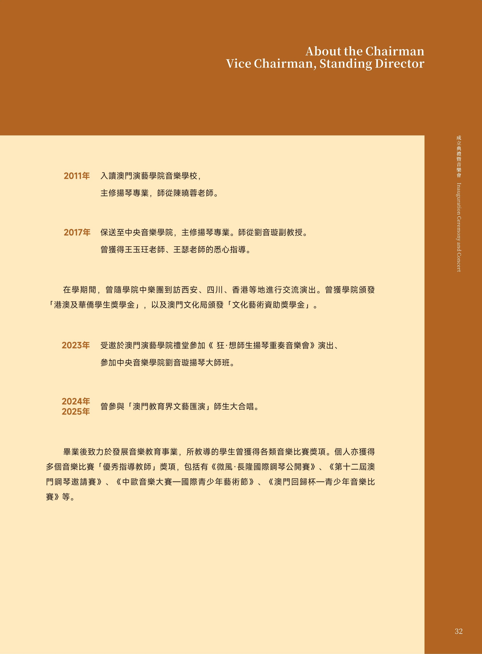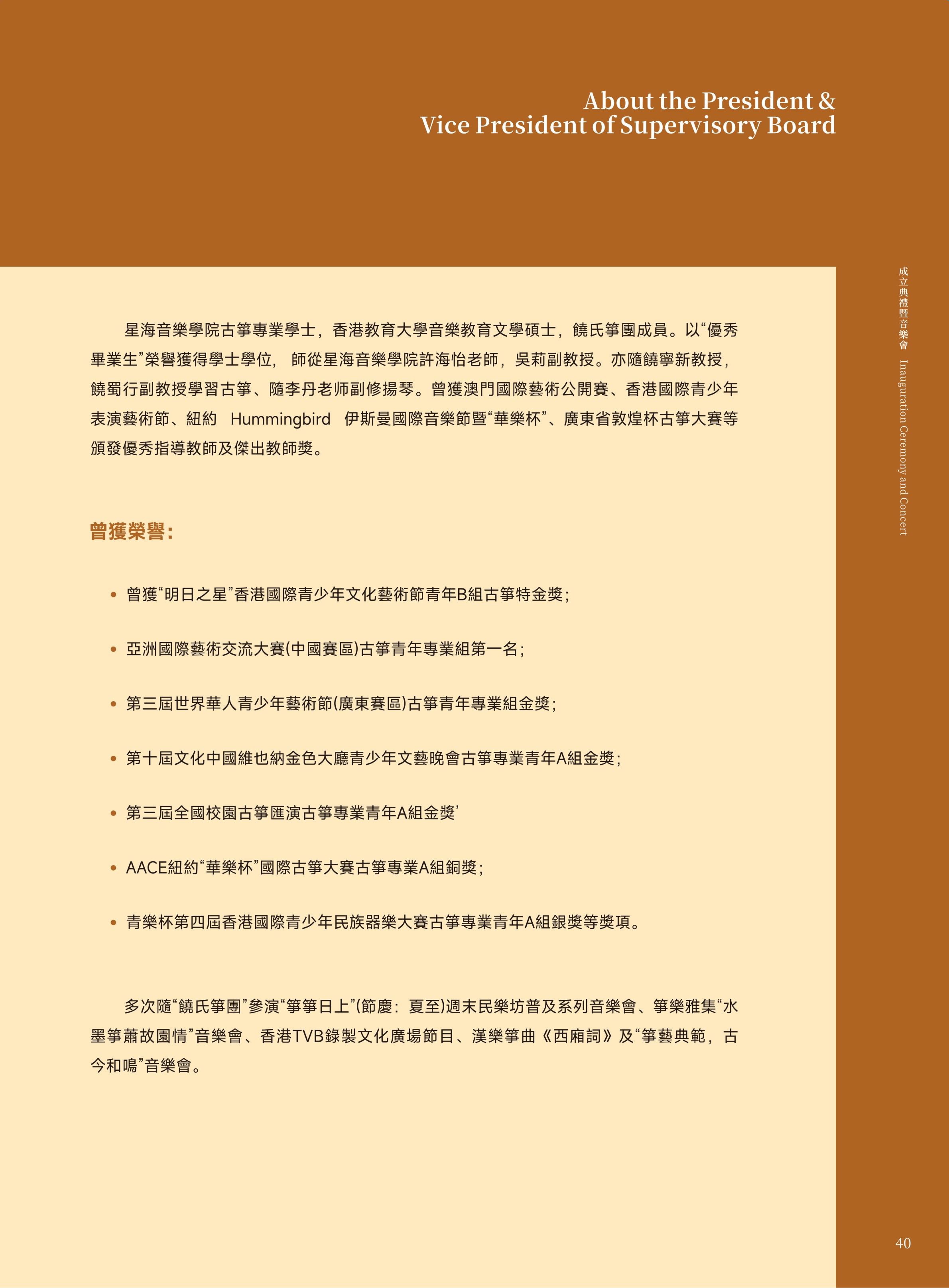 恭喜澳门扬琴研究学会成立!今天的演出真的太精彩了!老师们技艺精湛,每一首曲子都扣人心弦,让我对扬琴有了耳目一新的体悟。也非常感谢各位老师们平日的悉心教导和辛苦筹备,相信学会在各位老师们的带领下,未来一定会发光发热!