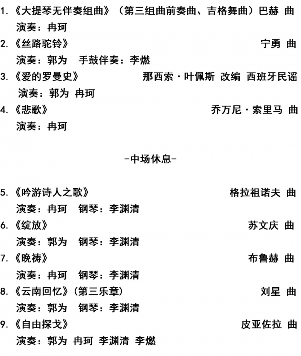 从古典到现代的时空穿越:曲目涵盖巴赫古典名作、丝路风情民乐、西班牙民谣改编、现代融合作品,纵览多元音乐世界。