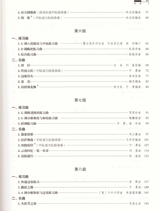 本曲集立足考级教学实际,体系严谨、分级科学、实用性强,是浙江阮乐考级的权威规范教材。在记谱编排上,遵循由浅入深的教学规律: