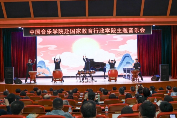 最后,一曲《金蛇狂舞+花好月圆》民乐合奏再一次将现场氛围推向了高潮,激昂的鼓点和婉转的旋律展现出热烈欢喜的节日氛围。音乐会从欢快的器乐重奏到悠扬的民乐合奏,从动感的打击乐齐奏到深情的声乐表演,国音学子们全情投入,用音符编织祝福,用旋律传递敬意,在这场视听盛宴中,与观众们共同展望国家教育行政学院的美好未来。
