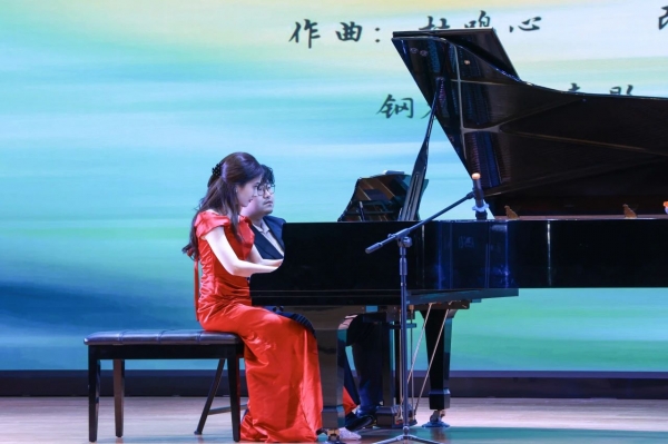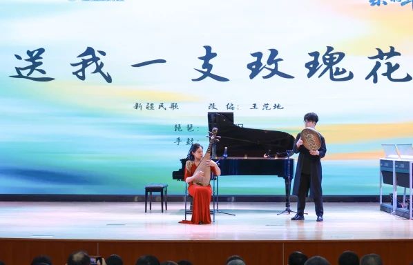 音乐会在一首《龙腾虎跃》的热烈氛围中拉开帷幕,以民族打击乐为魂,其多变的节奏、高难度的技巧、丰富的表演、深刻的内涵充分展现了中华民族自强不息、勇往直前的精神风貌。活泼热情的新疆民歌《送我一朵玫瑰花》以琵琶与新疆手鼓合作的形式演绎,乐曲中热情奔放的旋律就像是维吾尔族人民欢快的舞蹈,展现了维族人民对生活的热爱和赞美。随着《水调歌头》的歌声响起,观众被带入时间的长河中,这首被无数人传颂的歌曲,以其优美的词句和深邃的情感,打动着人们的心灵。钢琴四手联弹《快乐的女战士》节奏跳跃、音色明亮,通过高低音区的呼应,既保留了原曲的军乐铿锵感,又增添了钢琴特有的灵动层次,充满革命浪漫主义色彩。