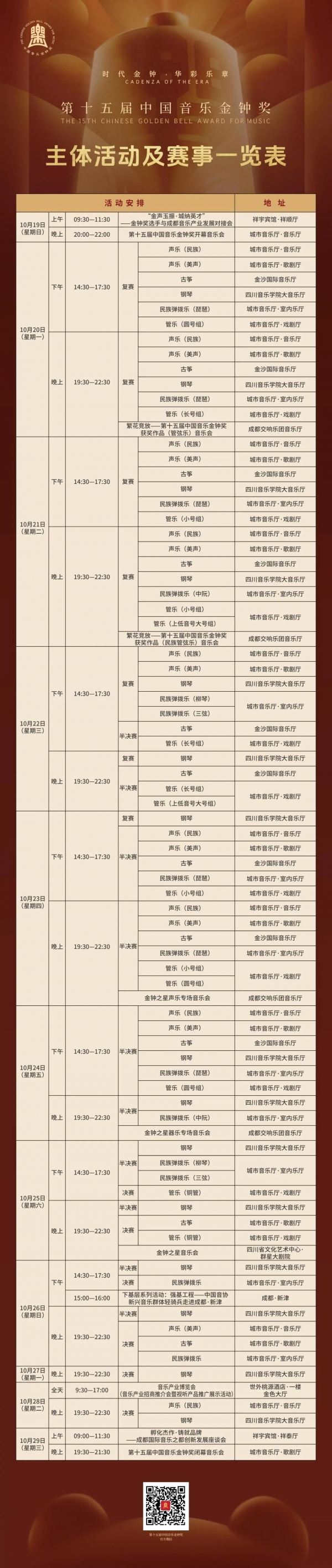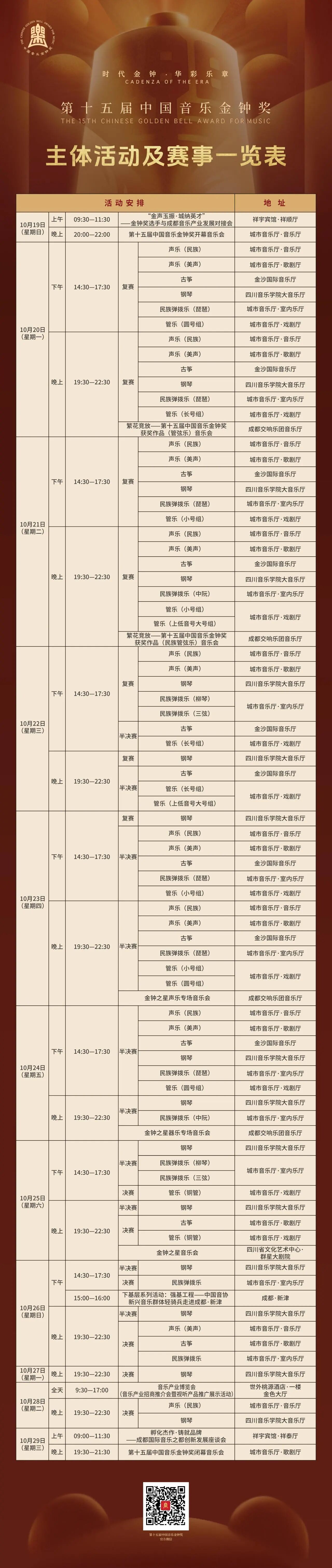 附:第十五届中国音乐金钟奖作品奖获奖名单主体活动及赛事一览表