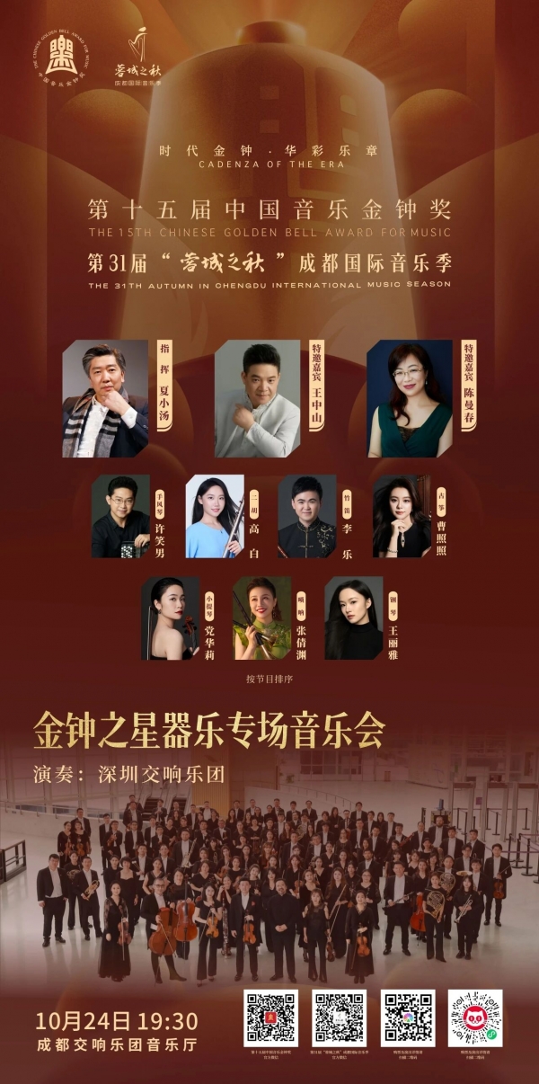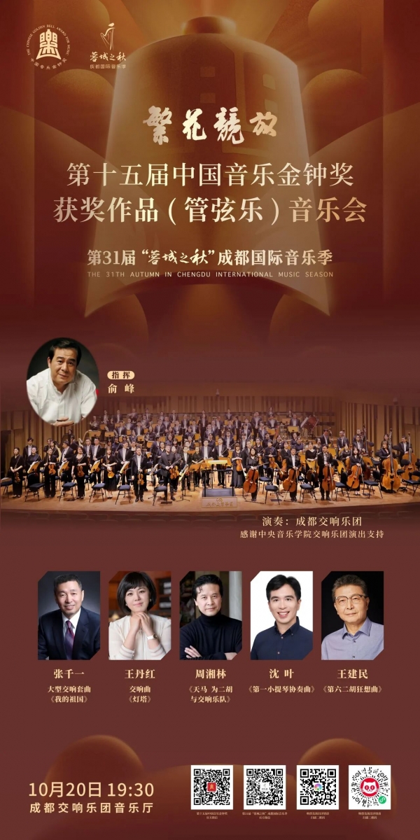 由中国文学艺术界联合会、中国音乐家协会主办,成都市人民政府、中共四川省委宣传部、四川省文化和旅游厅、四川省文学艺术界联合会承办,以 “时代金钟 · 华彩乐章” 为主题的第十五届中国音乐金钟奖正在成都如火如荼的举行。为满足更多观众的观赏需求,本届金钟奖将从半决赛开始线上直播。同时,本届金钟奖与第31届 “蓉城之秋” 成都国际音乐季深度联动,策划推出的多场高水平音乐会也将全程直播。敬请关注!