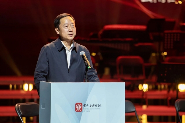 中央音乐学院党委副书记李众在致辞中首先代表学校向中共云南省委宣传部,以及各承办协办单位表示诚挚感谢。他表示,作为中国音乐教育的“国家队”,中央音乐学院始终坚持“为党育人、为国育才”的初心使命,通过创新教学模式、开展国际交流、推动艺术普及等多维度探索民族音乐传承发展。本届传承周是央音推动民乐艺术在新时代传承发展的又一次实践探索。他强调,民族音乐的传承发展需要坚持守正创新,既要坚守中华文化立场,又要让传统艺术焕发时代光彩。中央音乐学院期待通过此次活动,推动专业院校与民间艺人的深度交流,共同肩负起新时代文艺工作者的使命担当。