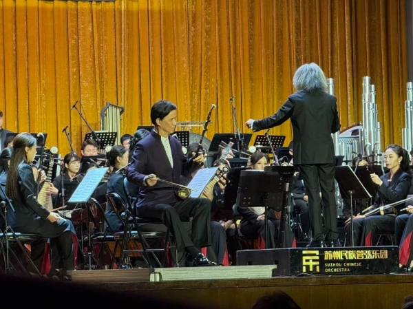 随后,作曲家赵季平创作的《国风》以《梅花三弄》为魂,奏响“弘中国风骨、扬民族精神”的壮阔篇章;乐团艺术指导朱昌耀创作并领衔演绎的二胡与乐队《乡思情韵》以委婉曲调道尽赤子乡愁,琴音与乐队的默契配合引得现场掌声不断;乐团委约作曲家刘长远创作的《丝竹交响》则以船歌慢板与丝竹快板对话,将太湖船歌、寒山钟声、江南评弹等意象熔铸成对故乡的深情礼赞。乐团还在观众的欢呼声中加演了《秋江花月夜》。