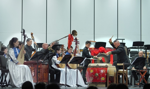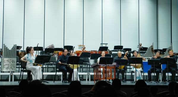 随后,安徽、江苏、浙江三地乐团陆续登台,聚焦非遗传承与地域根脉。安徽乐团徽之韵组合带来吹打乐《欢乐曲》,源自安徽民间乐曲的旋律经整理改编后,尽显“徽风皖韵” 的独特魅力;江苏省太仓市五洋丝竹乐团演绎江南丝竹《灯会》,节奏由简至繁,生动还原华灯璀璨、人声鼎沸的喜庆场景;浙江省浦江县清音民乐团演奏浦江乱弹《花头台》,四个乐段分别以不同乐器为主角,将浦江人率直奔放的个性与吉祥喜庆的氛围融为一体,尽显地方音乐特色。