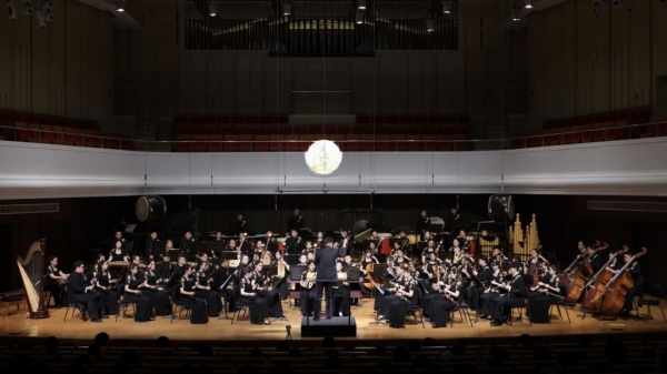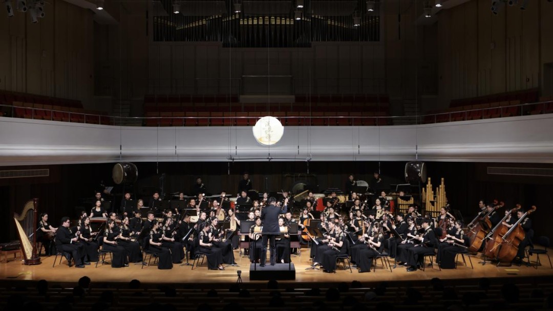 青年作曲家郑飞的《寒山子的诗》创作灵感源自唐代诗僧寒山子的哲思。该作品突出三弦音色的多样化表达方式。三弦与民族管弦乐队的对话,不仅实现了音色层面的共鸣,更在形式上展现了“诗与乐”的互动。作品以极具东方意味的“留白”构思,将诗意的空灵与音乐的流动结合,营造出“以声入禅”的精神空间。
