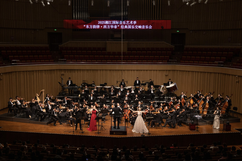 11月22日晚,2025湘江国际音乐艺术季(五)——东方韵律·西方华章经典国乐交响音乐会在长沙音乐厅·湘江大厅上演。