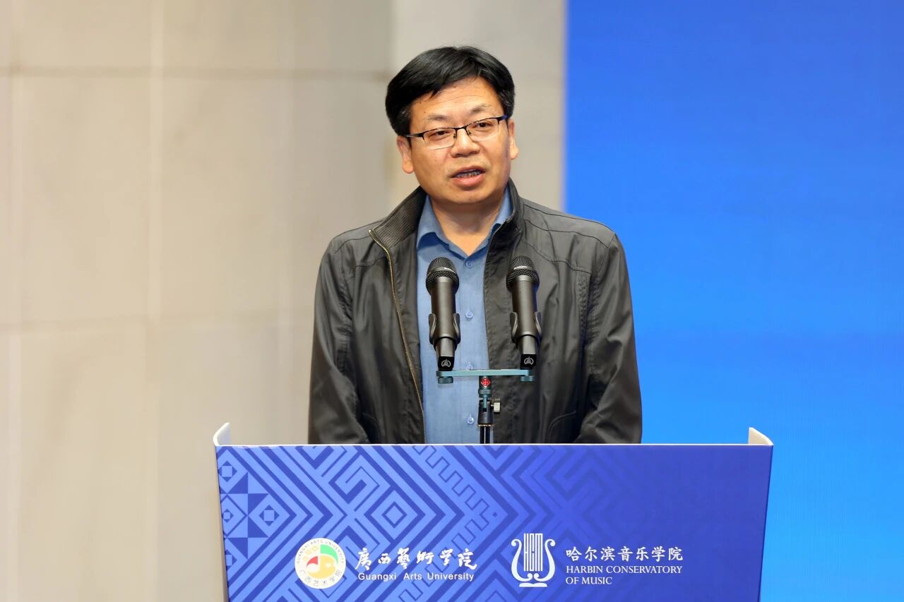 广西艺术学院党委常委、副院长谢斌致欢迎词,对远道而来的哈尔滨音乐学院师生表达了热烈欢迎,对关心支持本次活动的广西壮族自治区民族宗教委员会及有关单位致以诚挚谢意。他介绍了广西艺术学院与哈尔滨音乐学院的办学特色以及本场音乐会的亮点;期待两校深化合作,共同为繁荣民族音乐事业、铸牢中华民族共同体意识奉献青春力量。