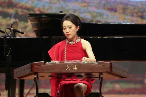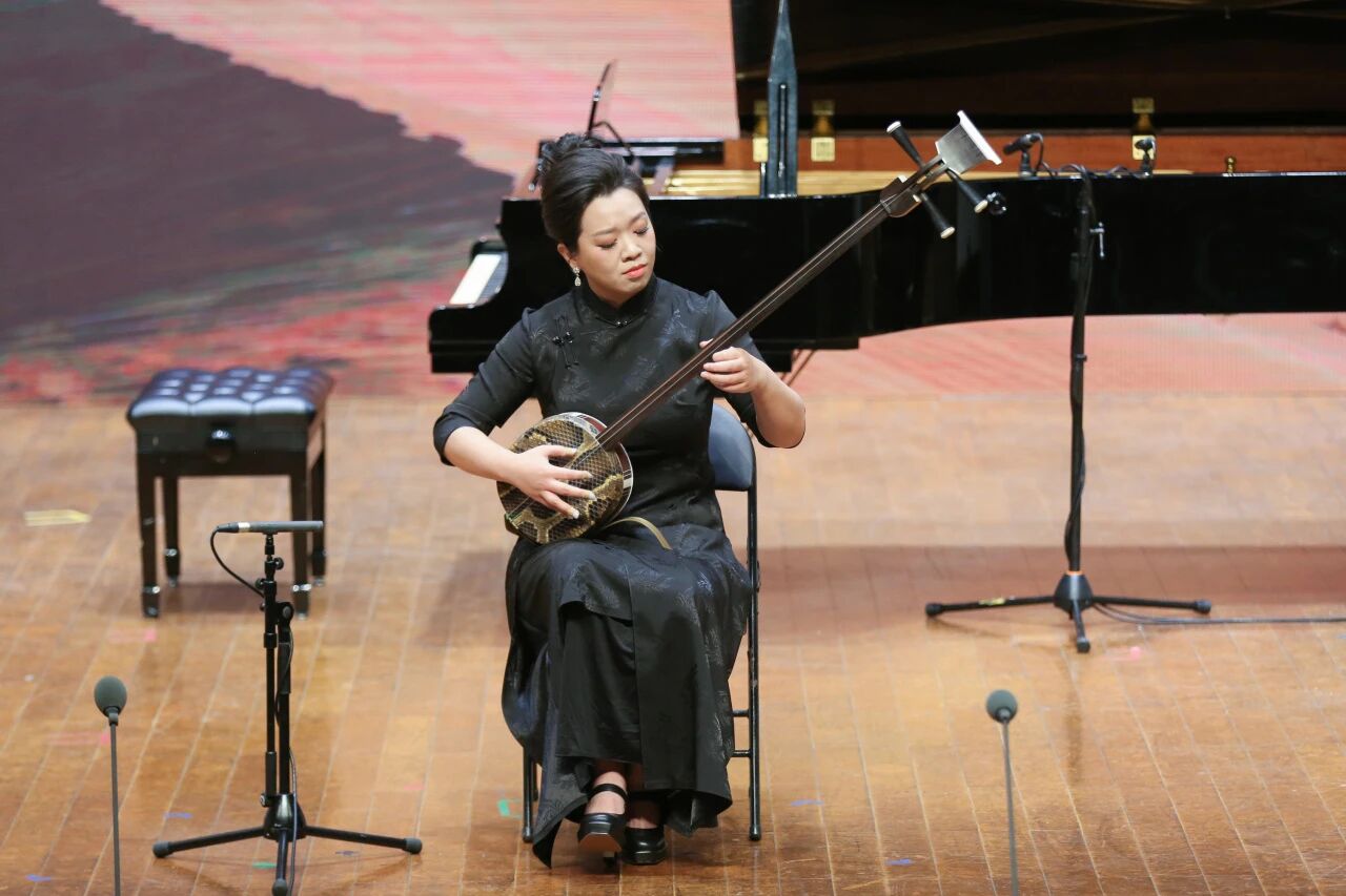 三弦独奏《沙漠之旅》(费坚蓉作曲)由哈尔滨音乐学院教师张馨元演奏,她以精湛的演奏技法,用三弦独特的音色描绘出沙漠的苍茫与壮阔,旋律时而低沉悠远,时而激昂高亢,带领观众开启一场奇妙的“音乐沙漠之旅”,展现出三弦这一民族乐器的丰富表现力。