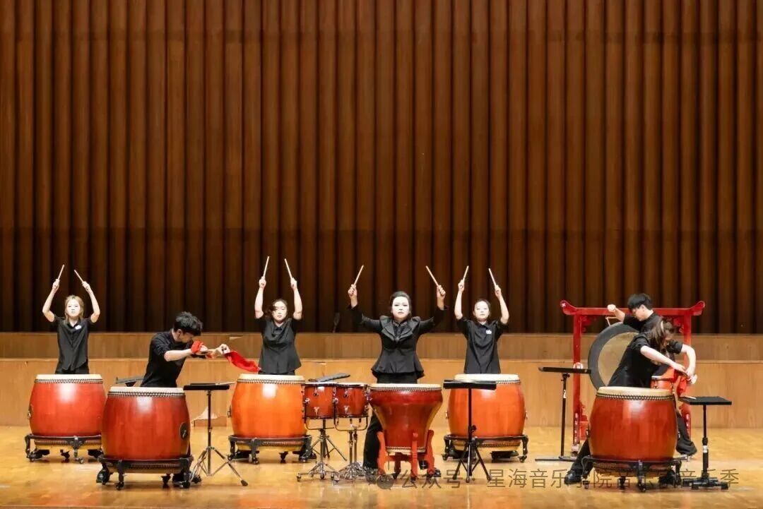 《荔枝红》由李复斌教授作曲,王志峰老师指导,天天打击乐团演绎。作品以岭南特产荔枝为文化符号,通过丰富多样的打击乐合奏,将荔枝丰收时节的欢腾景象、人们的喜悦心情化作铿锵鼓点与灵动节奏,旋律中满溢南国风情的热烈明快,为整场音乐会画上圆满的句号。