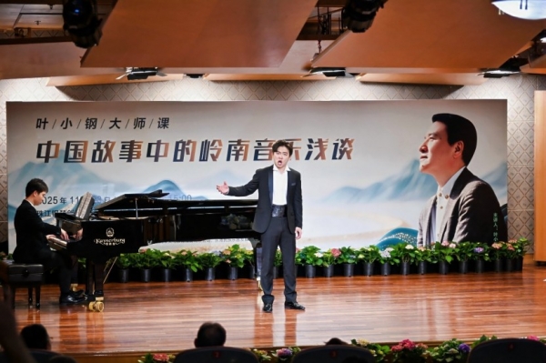11月23日下午,南国羊城花团锦簇、粤韵悠扬,珠江钢琴创梦园音乐厅座无虚席,洋溢着浓厚的艺术氛围。中国音乐家协会主席、香港中文大学(深圳)音乐学院院长叶小钢,以“中国故事中的岭南音乐浅谈”为题开讲大师课。活动以“现场演奏+夹叙夹议”的形式,深入浅出解析岭南音乐的历史变迁与时代创新,探讨非遗保护与当代创作的融合路径,为现场数百名音乐爱好者、业内从业者及高校师生带来了一场兼具思想深度与艺术感染力的文化盛宴。