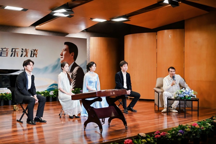 活动现场,香港中文大学(深圳)音乐学院助理教授、青年演奏家张越演绎了叶小钢应珠海市委宣传部委约创作的管弦乐组曲《珠海之光》中的第二首《落花天》,作品融入民歌主题、广式喜乐等广东元素,尽显南粤风土人情;该校研究生邰振宇以高亢明亮的男高音演唱《送人之岭南》及广东童谣《月光光》,音色温润且穿透力十足,将岭南民俗与儿时印记诠释得淋漓尽致;星海音乐学院研究生潘铬冰带来古筝独奏《出水莲》《行云流水》;粤趣组合现场演奏广东音乐五架头《走马》《平湖秋月》,让观众沉浸式感受岭南音乐的多样魅力。