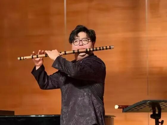 程竞楷(2023级民族器乐系竹笛专业)师从刘铁男教授,斩获第三届“松庭杯”金奖等多项荣誉,音乐会以导师创作的《向光忆梦》开篇,囊括《梆笛协奏曲》《陌上花开》等作品,融合传统戏曲、民间音乐与西方创作技法,竹笛的高亢明亮动婉转令人沉醉。