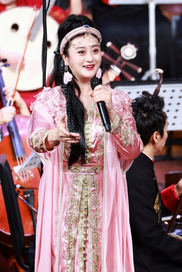 女高音陈思演绎的新疆民歌《青春舞曲》,以明亮清澈的嗓音与乐队交织呼应,仿若一幅西域阳光下的欢歌画卷在耳畔展开。