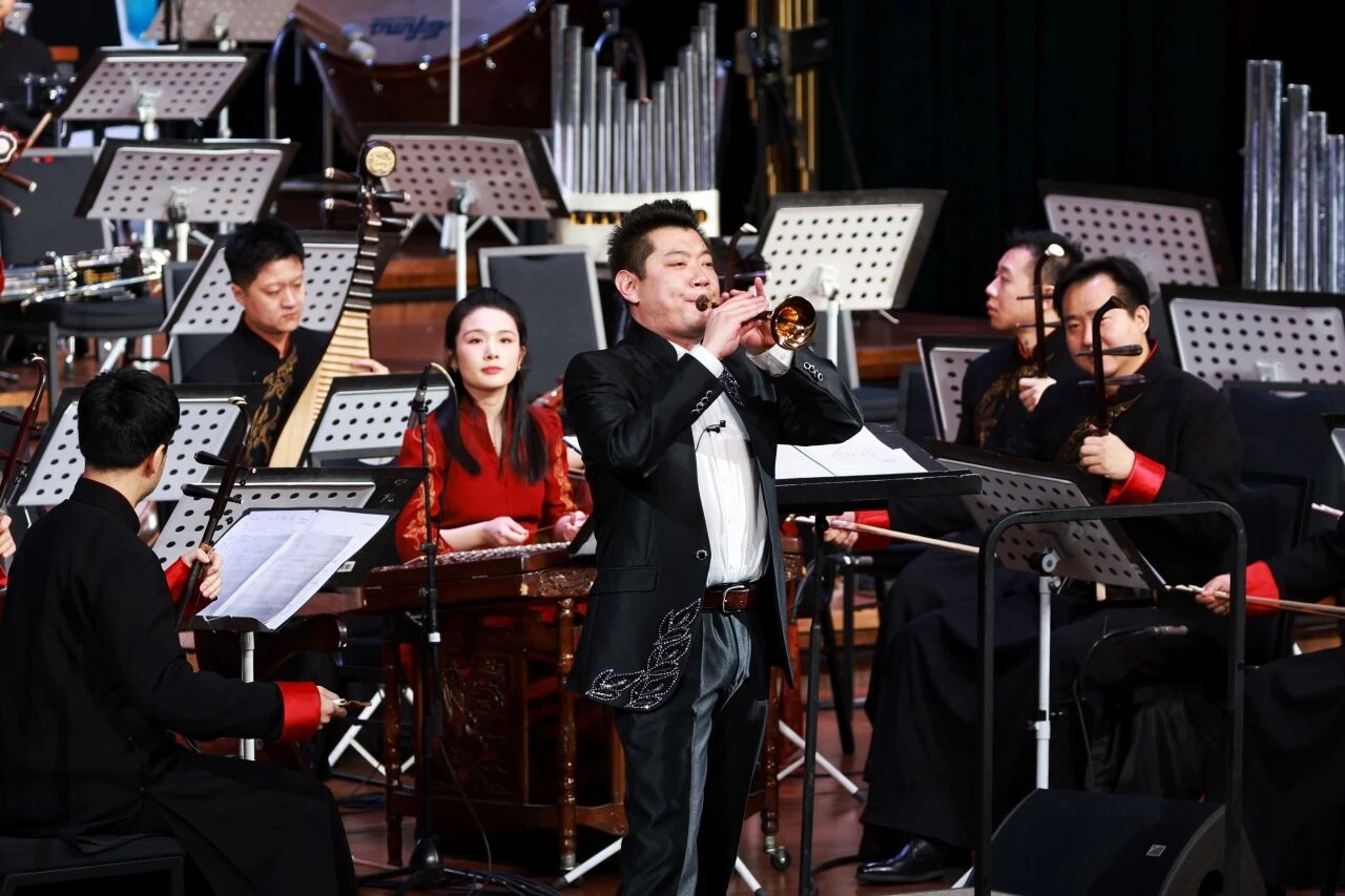 《百鸟朝凤》在唢呐与乐队的配合中模拟出群鸟相和的声韵,王荣非以精湛的技艺展现了唢呐独特的艺术感染力。