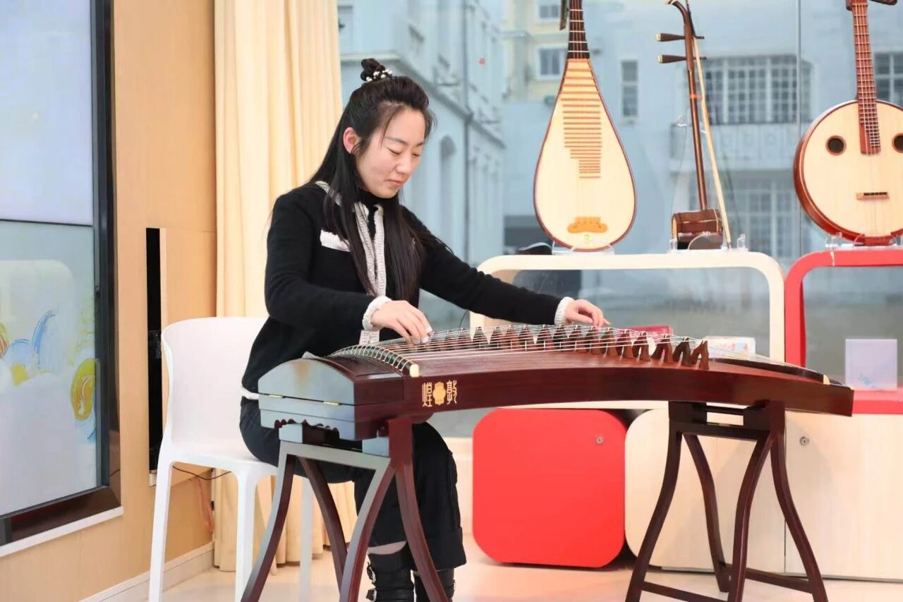 活动现场,《寻弦奇遇记》的文字作者卢颖与图画作者王梦诗分享了创作背后的故事。随后,“敦煌”的演奏家们带来了二胡、古筝等乐器的精彩演绎,并结合趣味问答,带领现场小朋友“听音识器”,在互动中播撒民乐欣赏的种子。