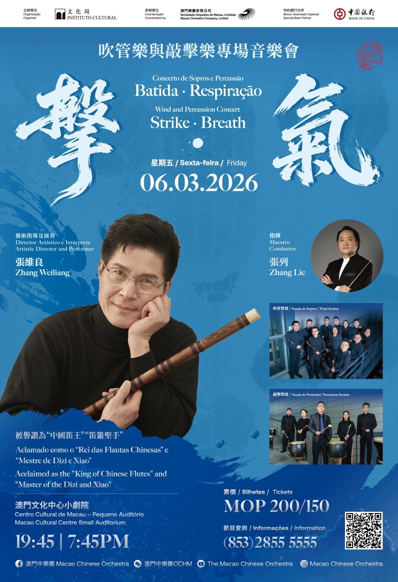 吹管樂與敲擊樂專場音樂會《擊·氣》2026.3.6|19:45|澳门文化中心小剧院票价:MOP 200/150艺术指导:张维良指挥:张列