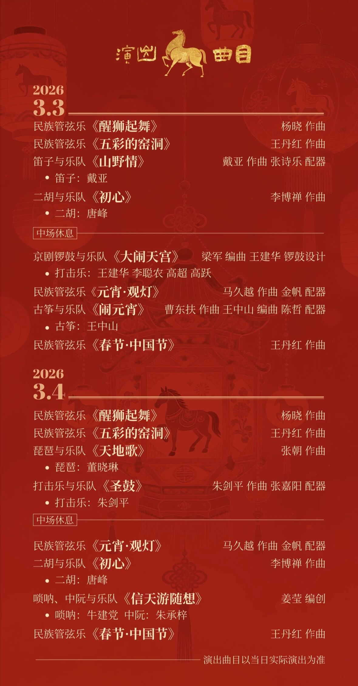 中央民族乐团“丙午马驰”元宵节音乐会