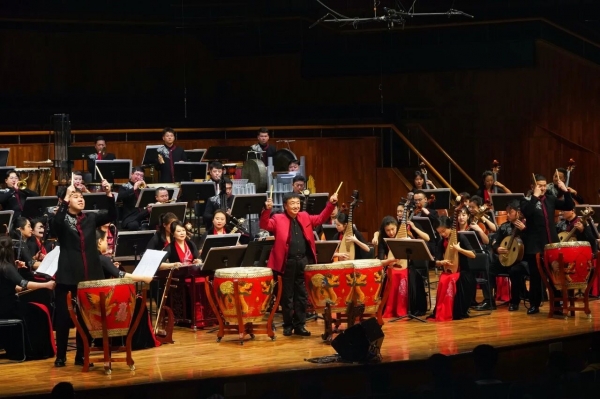 2026年2月28日晚,星海音乐厅交响乐演奏大厅内丝竹声声、鼓乐铿锵,广东民族乐团2026年新春音乐会在欢腾热烈的氛围中圆满落幕。这场乐团的年度贺岁力作,由著名指挥家张列执棒,携手“南国鼓王”陈佐辉、粤剧名家蒋文端、二胡演奏家张咏音、大提琴演奏家莫漠及歌唱家许乐、汪晨蕊等顶尖艺术家,以首首佳作勾勒出一幅岭南味十足的新春图景。