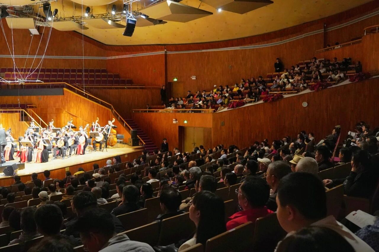 音乐会以施万春作曲、张列移植编配的《节日序曲》拉开帷幕。这首以河北吹歌《淘金令》为素材的作品,经由民族管弦乐演绎,更添喜庆气韵,旋律中洋溢的豪迈与乐观奠定了整场晚会的基调。