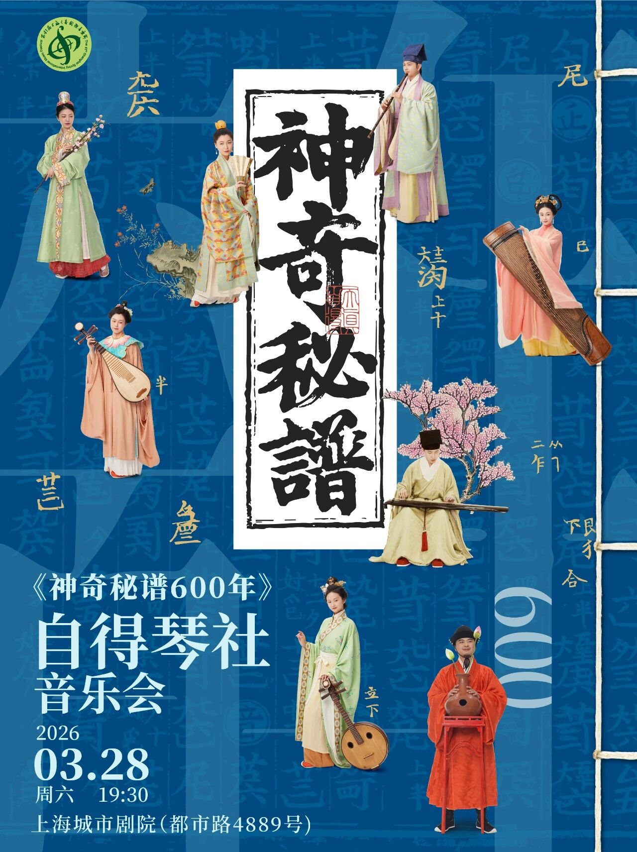 2026年3月28日晚,由自得琴社呈现的“《神奇秘谱》600年”音乐会,于上海城市剧院精彩上演。作为第41届上海之春国际音乐节“大众文艺”板块展演项目之一,本场演出以明代谱集《神奇秘谱》为核心,以古琴新声绘就东方审美图卷。