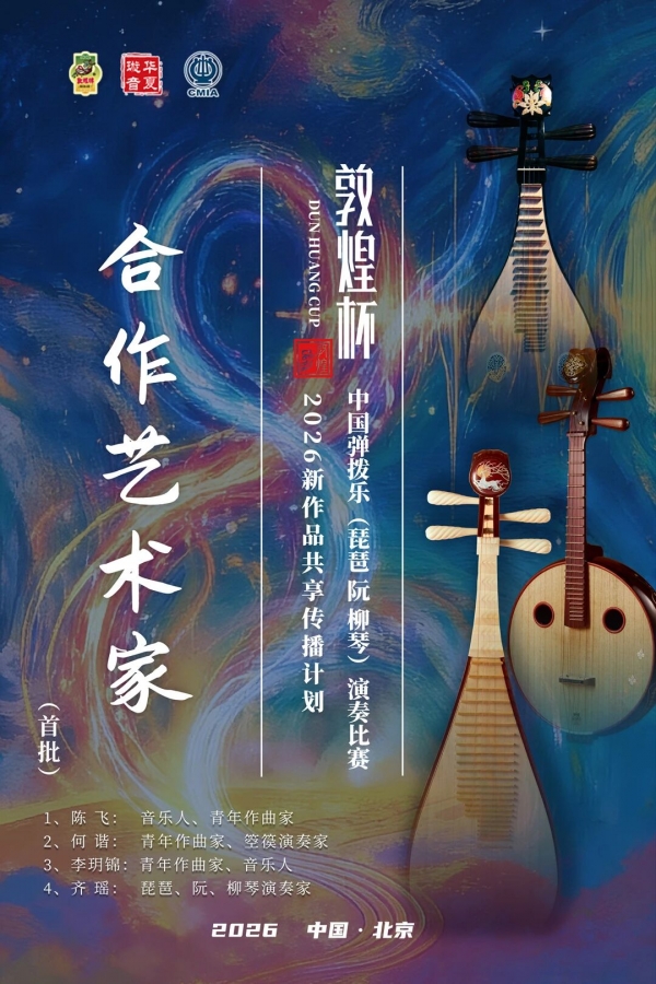 2026年,第二届“敦煌杯”中国弹拨乐演奏比赛(琵琶/阮/柳琴)将于8月在北京盛大启幕。 本届赛事重磅推出弹拨乐“新作品共享传播计划”,旨在打破创作与演奏的界域,深度链接杰出作曲家与演奏家。我们将全力推动原创与改编作品的发布与传播,让民族音乐的新声跨越圈层,广为流传。