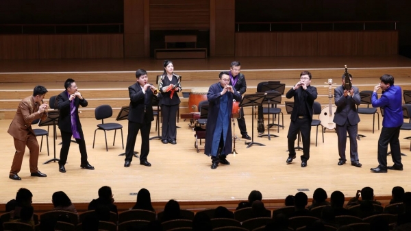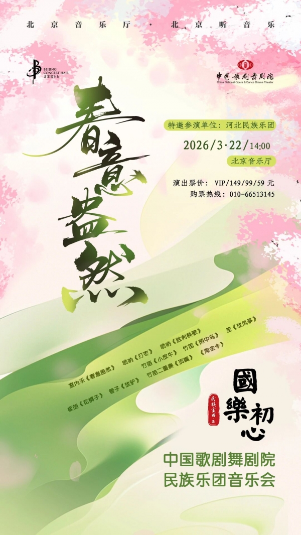 春和景明,乐以咏怀。河北省歌舞剧院民族乐团应中国歌剧舞剧院民族乐团邀请,3月22日在北京音乐厅上演了一场《春意盎然》音乐会,以燕赵豪迈与冀中灵动的国乐,描摹春日万象——唢呐高亢嘹亮如春雷醒野,竹笛婉转灵动似柳梢清风,板胡明快鲜活藏市井烟火,刚柔并济尽展地域艺术的丰富色彩。