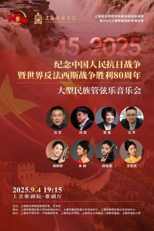 2025年,是中国人民抗日战争暨世界反法西斯战争胜利80周年的重大历史时刻。上海音乐学院民族音乐系联合上海市各区青少年活动中心学生民族乐团,共同发起“纪念中国人民抗日战争暨世界反法西斯战争胜利80周年大型民族管弦乐音乐会”。是为铭记那段光辉而悲壮的岁月,为弘扬伟大的中国人民抗战精神。2025年,也恰逢中国民族音乐大师闵惠芬先生诞辰80周年,音乐同好们共奏丝竹黄钟,对闵惠芬先生的艺术人生致以深情礼赞。