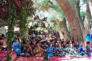 麦西来甫,也可以音译为麦西莱普,在维吾尔语中意为"集会"、"聚会",是维吾尔族人民集取乐、品行教育、聚餐为一体的民间娱乐活动。