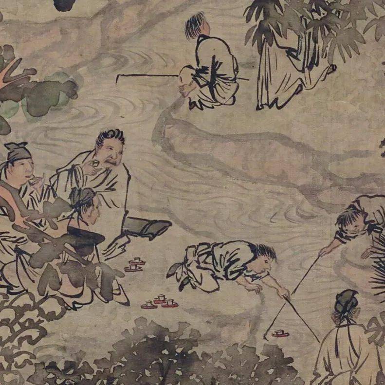 作品《曲水流觞》创作完成于2021年3月。“曲水流觞”乃古时文人墨客诗酒唱酬之雅事。农历三月三,济南曲水河泮曾举行诗会,文人雅士荟萃于此。人们在上游斟满酒杯,置于木质盘中,酒杯则顺着蜿蜒的河道漂至下游,流经之处便有饮酒赋诗之声……