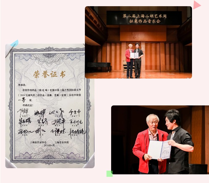 在此次佳作云集的大赛中,李渊清创作的二胡与钢琴《桃花坞》从42首原创作品中脱颖而出,荣获一等奖。