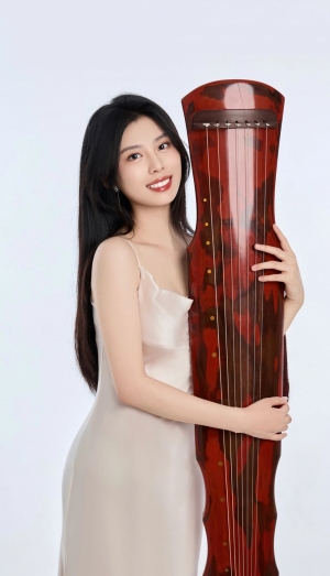 董贝尔,10岁起跟随著名古琴演奏家、教育家、上海音乐学院戴晓莲教授学琴至今,现为上海音乐学院古琴专业三年级学生。