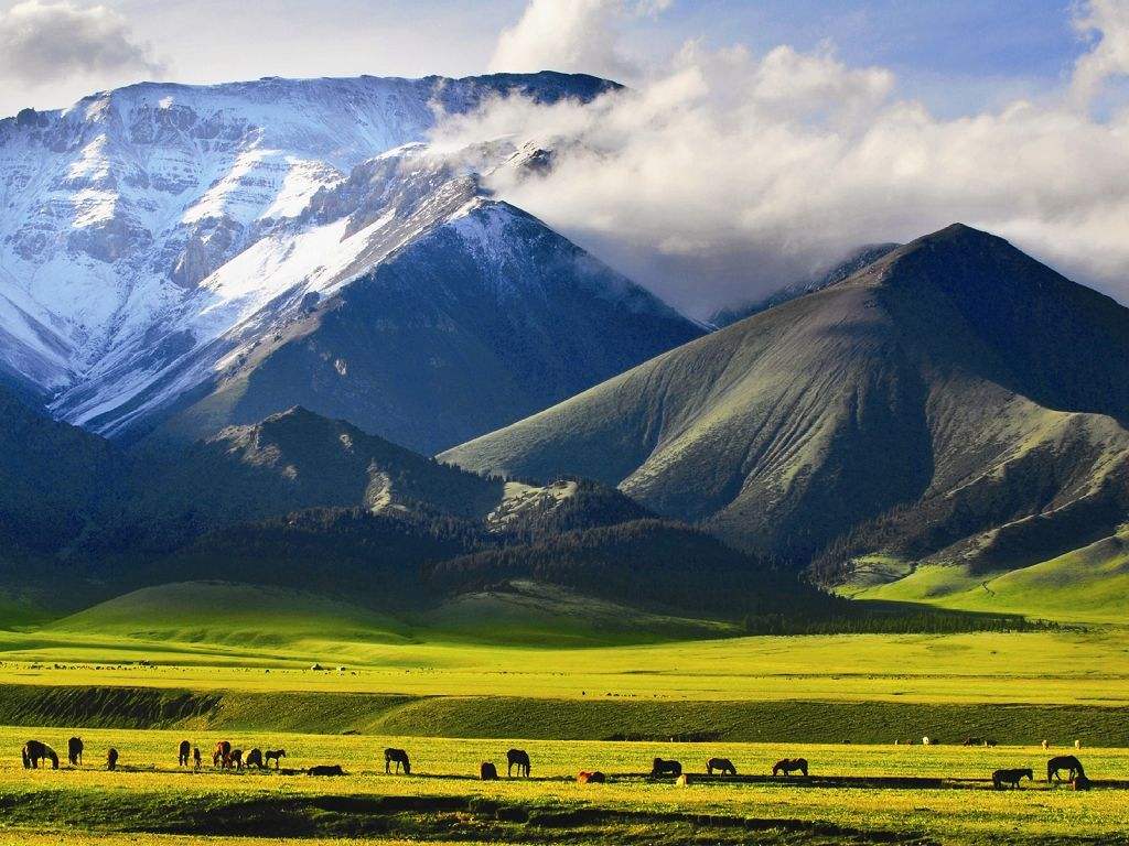 此曲由成公亮先生作于1994年,是模仿新疆维吾尔族歌舞“赛乃姆”音乐风格写成,意在追寻汉唐历史上音乐文化交流的踪迹。乐曲将“中原”乐器与“西域”音调结合,描绘了伊犁河畔的人们在美丽的天山脚下载歌载舞的场景。