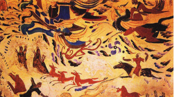 《西域流光》由作曲家李博禅创作,其主要音乐元素取自敦煌琵琶古谱,音乐时而舒缓静谧,时而铿锵激越,配合精美的现代舞蹈,融合了千佛洞壁画、多彩灯光等舞台造型元素,让在场观众仿佛置身于亘古苍凉、神秘莫测的西域大地。