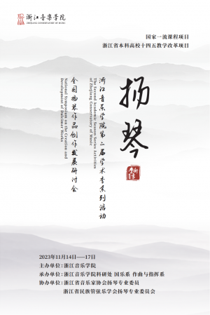 本届全国扬琴作品创作发展研讨会由浙江音乐学院主办,浙江音乐学院科研处、浙江音乐学院国乐系、浙江音乐学院作曲与指挥系承办,浙江省音乐家协会扬琴专业委员会、浙江省民族管弦乐学会扬琴专业委员会协办。