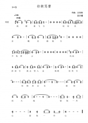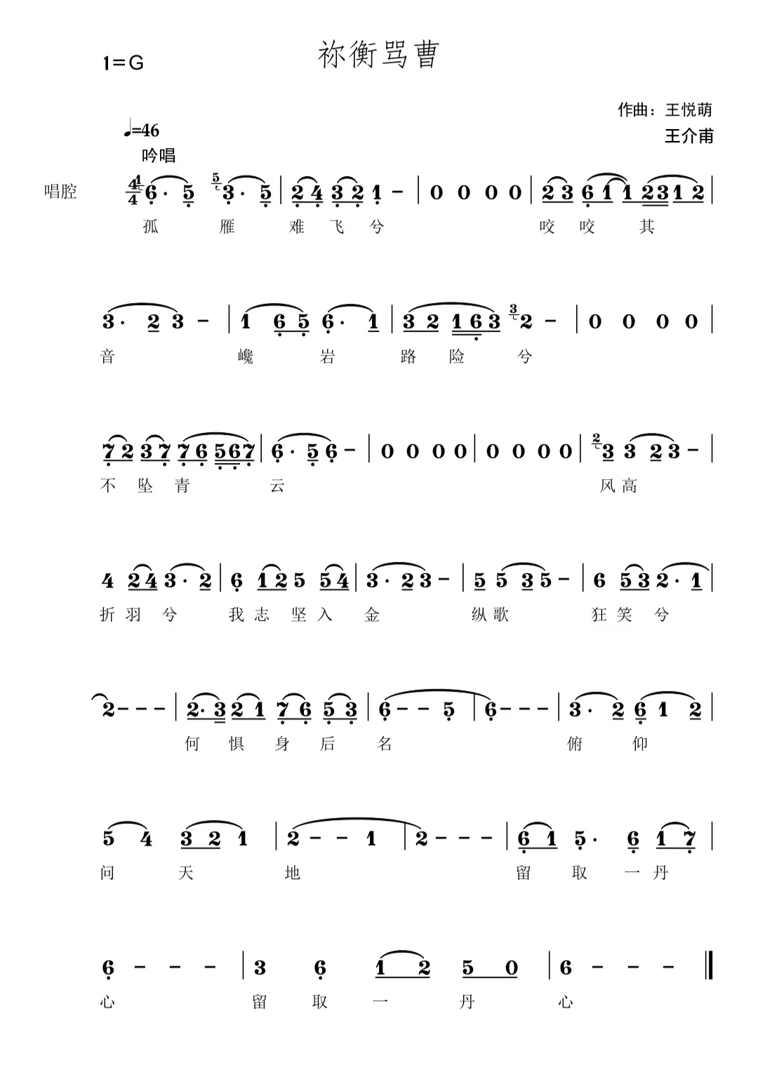 此作品借鉴了京剧《击鼓骂曹》的人物形象,以音乐会作品的形式呈现,其中包含了民族乐、交响乐与戏曲等多元化形式。